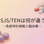 しかしこの「除外」は、単にチェックリストの一項目ではありません。EMとスティーヴンス・ジョンソン症候群(Stevens-Johnson syndrome: SJS)/中毒性表皮壊死症(toxic epidermal necrolysis: TEN)は、表面的には類似する臨床像を呈し得るものの、その根底にある免疫学的メカニズムは本質的に異なります。この違いを理解することは、正しい診断のみならず、適切な治療選択を導くうえでも不可欠です。