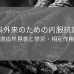 なお、併用禁忌、併用注意薬剤についてはあまりに多く、一部は表にまとめられませんでした。使用の前には添付文書を確認することを推奨します。